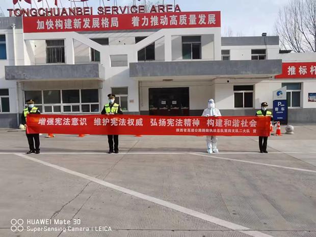 为弘扬宪法精神,维护宪法权威。12月6日,省路政执法总队第四支队二大队根据省厅《关于开展2022年“宪法宣传周”活动的通知》精神和总队部署要求,以“学习宣传贯彻党的二十大精神,推动全面贯彻实施宪法”为主题,深入G6522延西高速辖区各站点、服务区开展宣传工作。