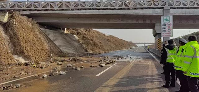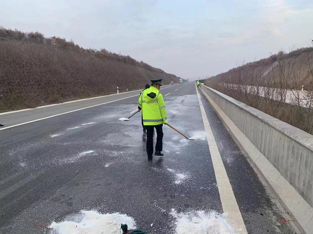 接到报告后,大队负责人带队立即赶赴现场处置。一是将该情况及时告知澄城应急办及相关县领导。县政府立即安排县安委会、石堡川管委会、镇政府等当地部门对突发事件开展处置工作,并于8时30分关闭水源源头。二是联合辖区高交、运营企业迅速开展现场处置工作,科学、合理布设安全警示标志标牌,并通过电子情报板发布道路阻断信息及车辆绕行路线,展开交通疏导工作。三是联合养护部门在此路段设置警示标志,提醒过往车辆行人仔细观察、谨驾慢行,确保人身安全。截至当日20时55分,隐患排除,道路清理完毕,主线恢复正常。
