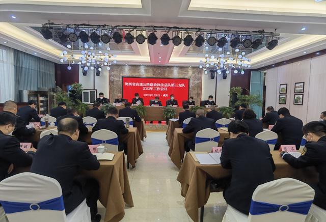 魏建军支队长在报告中指出,2022年是全省高速路政执法新体制正式运行元年,在省路政执法总队党委的坚强领导下,在相关单位的大力支持和紧密配合下,第三支队高效统筹疫情防控和路政执法各项工作,全面完成了各项工作任务,为陕西高速路政执法高质量发展作出了积极贡献。报告综合分析了今年路政执法工作面临的新形势和发展方向,明确了5项重点工作:一是强化依法行政,二是强化执法为民,三是强化行业治理,四是强化科技赋能,五是强化党建引领。