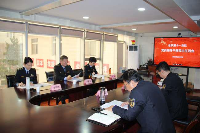 2月27日,省路政执法总队第十一支队召开2022年度领导班子民主生活会。省路政执法总队党委委员、副总队长严武兵出席会议并讲话,总队人事处干部李昕、李佳欣到会指导。总队第十一支队支队长齐尧主持会议,支队领导班子成员参加会议,支队综合办主任列席会议。