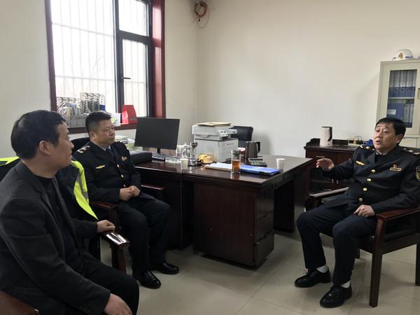 每到一处,督导组对基层大队的办公区域安全情况进行检查,亲切询问了一线执法人员的工作生活情况,各大队长就近期大队安全生产、执法业务工作、值班值守等情况进行了详细汇报。