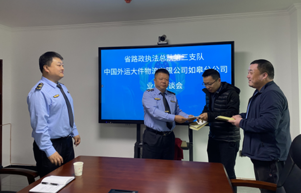 4月24日上午,省路政执法总队第三支队收到中国外运大件物流有限公司如皋分公司送来的锦旗,锦旗上写有“热情周到办实事、实干高效为企业”,该公司对支队执法人员在受理大件运输车辆业务过程中提供的热情、优质、高效快捷的服务表示由衷感谢。