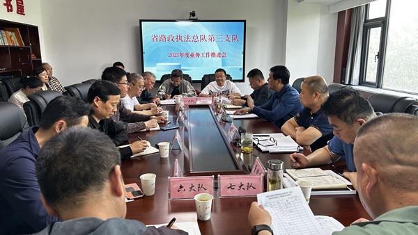 为进一步做好各类业务基础工作,立足全省高速路政执法工作会议确定的目标任务,围绕“三个一流”目标和“6个坚持”“5个聚焦”“23项任务”,全力推动高速路政执法高质量发展,更好地为加快交通强省建设提供坚强执法保障,4月27日下午,省路政执法总队第三支队召开业务工作推进会。支队领导、业务科室全体人员、各路政大队大队长参加会议。