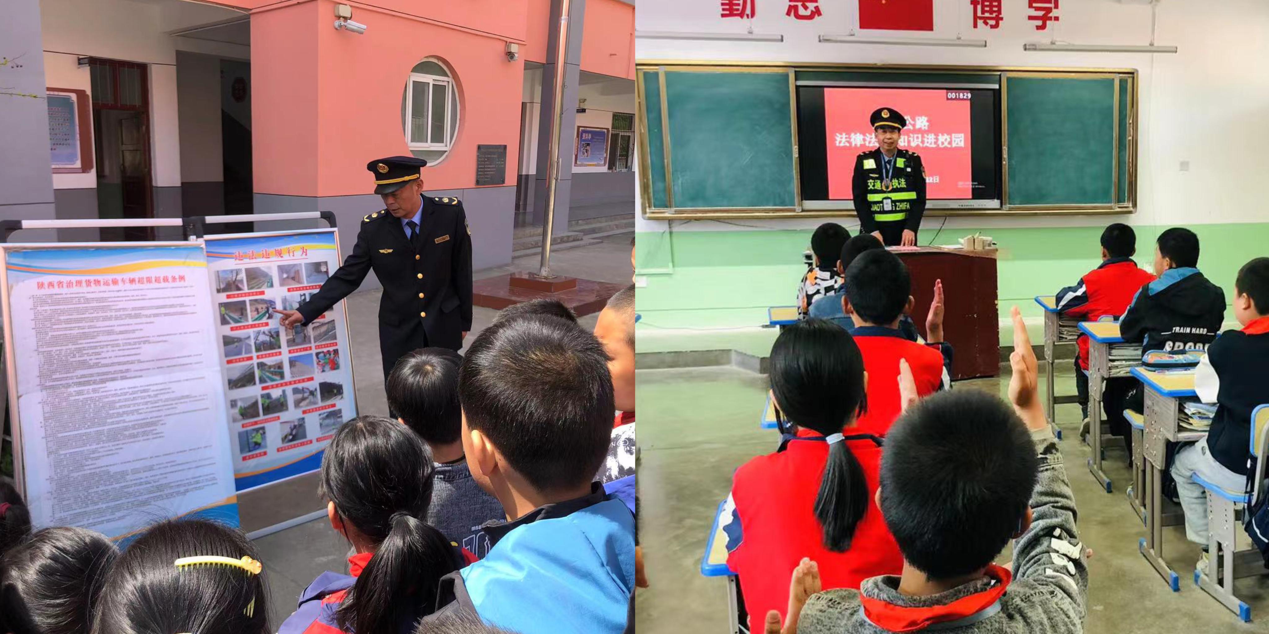 在凤县平木镇中心小学,支队四大队联合太凤高速交警中队、太白管理所开展了《高速公路法律法规知识进校园》系列宣讲活动,在广大小学生心里播下了安全出行的“种子”。