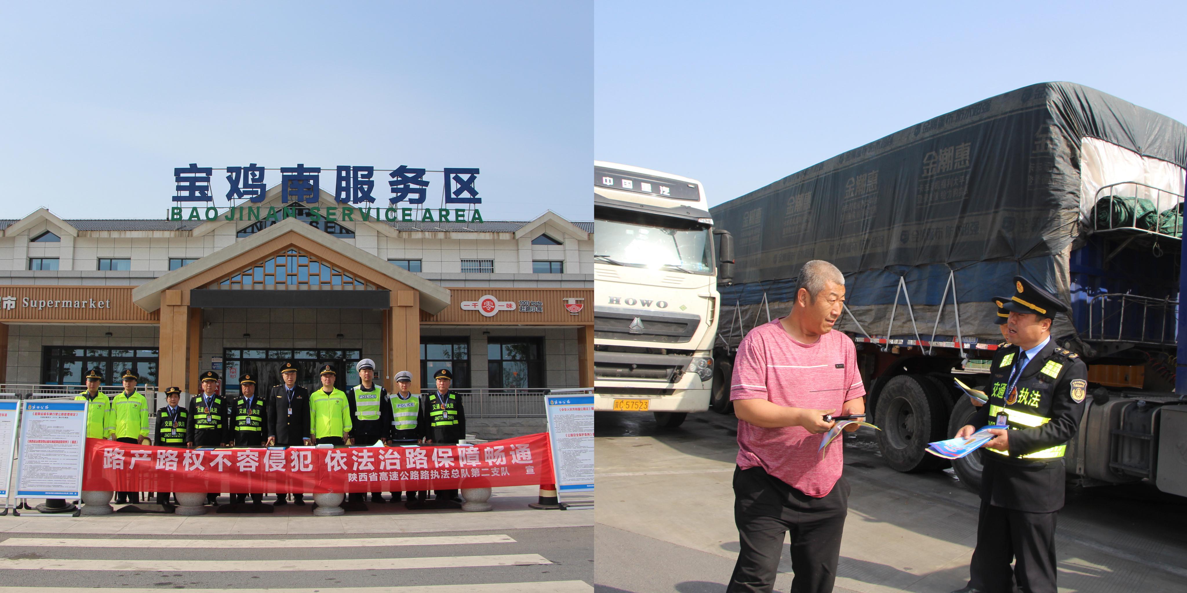 在烽火速特物流园、宝鸡西收费站、麟游县招贤煤矿,支队二大队、五大队联合辖区高交部门、运营分公司路产保护部门开展“送法进企业、进场站”活动,通过发放宣传单,宣传便民利企措施,让企业更好地知晓政策、享受政策。