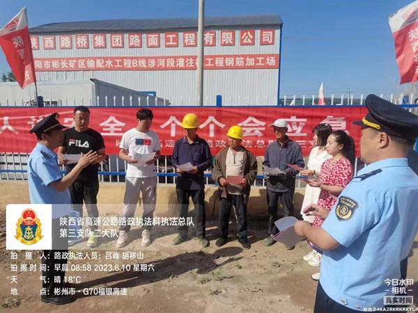 二大队在彬长输配水施工现场进行安全宣传活动并要求施工单位在施工过程中一定把安全工作放到首位。
