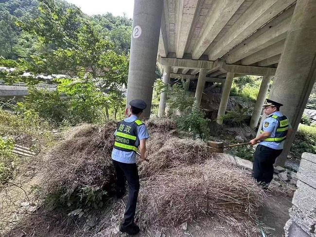 加强路域环境综合整治。认真贯彻落实总队关于路域环境综合整治攻坚行动的工作要求,联合白河管理所通过前期走访入户摸排统计,运用说理式执法,清理桥下空间堆积物200余㎡。