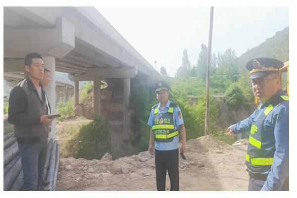 6月5日,大队联合路企部门对经前期摸排发现的2处影响高速公路通行安全的隐患问题进行集中整治,现场向建设方及桥下堆放物品当事人讲解政策法规并发放宣传单页,说明违法建设、堆放物品的危害、可能造成的损失及所要承担的法律责任,通过耐心细致劝说教育,群众表示理解,配合完成了隐患点的整治。