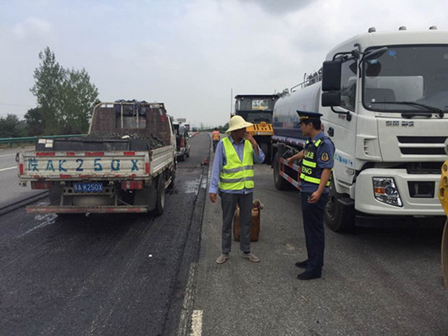 近期,华阴辖区多路段进行路面中修工程,为保障路面施工作业规范有序进行,华阴路政中队根据实际情况,在日常巡查过程中采取有效措施加大施工现场监管工作力度,确保过往司乘行车安全畅通。
