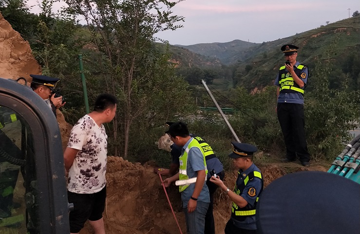 8月30日下午,吴堡路政执法人员在辖区内进行公路巡查,当行驶至G20K1077+580米上行右侧巡查发现有一路边挖沟机在公路控制区内损坏土质边坡,于是立即停车上前询问,得知当事人在未办理任何手续的情况下准备挖边坡修路。路政人员立即进行了测量并拍照取证,通过测量该违建的基脚距公路桥梁只有0.8米。路政人员立即制止了当事人行为,要求其停止施工,并向他们宣读、讲解了相关法律、法规,告知其法律后果,并对违法当事人下达了《违法行为通知书》等。