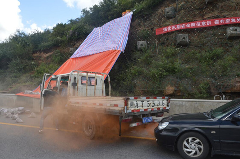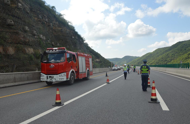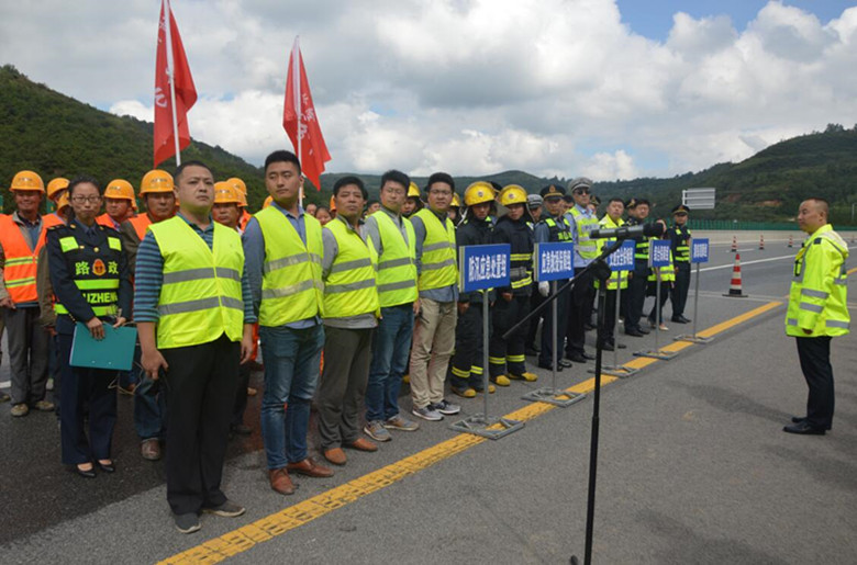 应急演练以延西高速上官山隧道南口K740+800M(延安方向)处山体滑塌且土石滑塌至桥面,造成交通事故为背景,以实战要求出发,路政、交警、消防、养护等多部门联合作战,密切配合,通力协作,达到应对、快速响应,协调有序,迅速高效处置公路灾害的预期目的。