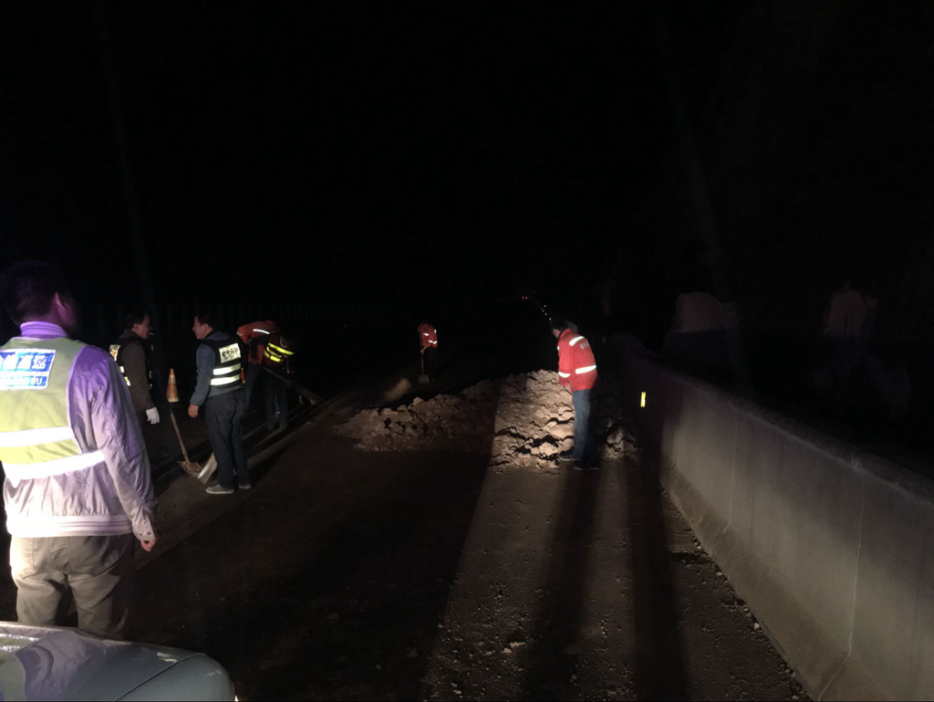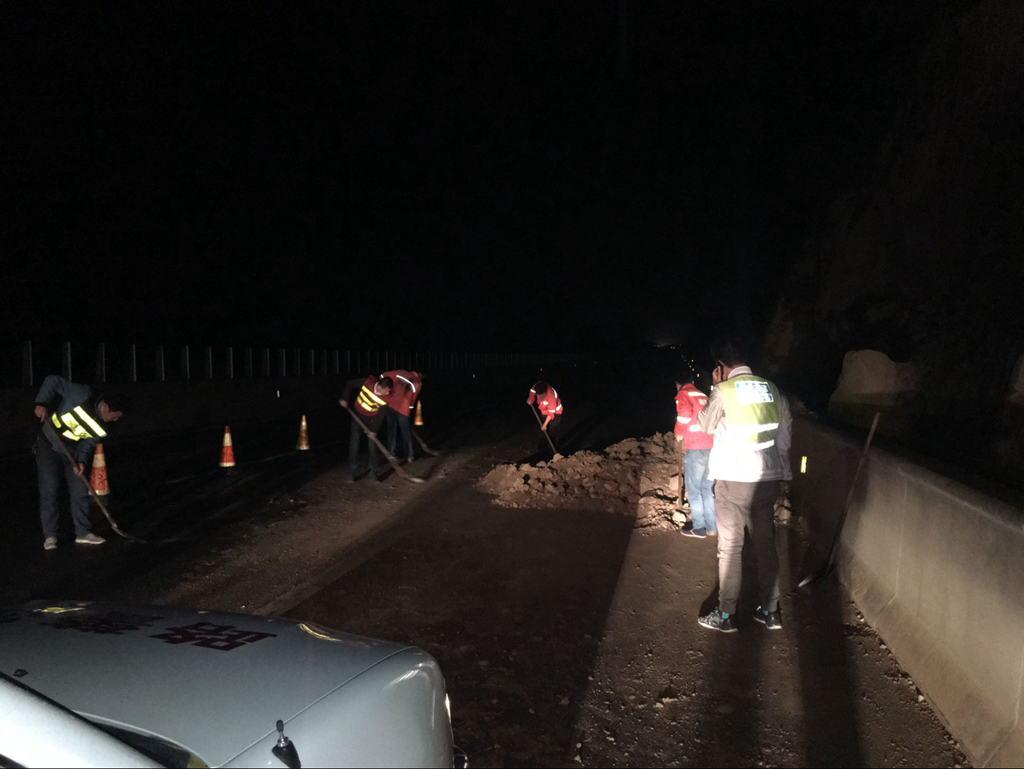2017年10月8日22时30分,榆佳路政大队对所辖路段进行正常巡查时发现榆佳高速K72公里处(榆林方向)右侧护坡发生塌方,应急车道及行车道堆积着大量泥土,行驶车辆只能借助超车道缓慢通行,严重影响行车安全,现场情况十分紧急,处置不当随时有发生大规模事故的可能。险情即警情,巡查人员立即采取紧急措施,开启巡查车警报器提醒后方车辆注意减速慢行,并迅速在来车方向摆放安全标志标识,引导车辆从超车道有序通行,同时向监控中心及时上报险情,23时养护人员到达现场,双方配合迅速完善了坍塌现场的警示隔离,经过2个多小时的奋战及时的清理了路面的泥土并疏通排水系统,顺利恢复了道路的正常通行。