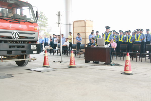 (图为治超员在进行超限超载检测比赛)