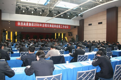 申艺学副总经理在回顾2007年治超工作指出,2007年,陕西省高速集团治超工作取得阶段性成果,省厅确定的“四项任务”、“八项目标”、“十项制度”基本完成,车辆超限超载率大幅下降,集团公司所辖路段平均超限超载率已降至1.42%;公路养建成果得到有效保护;道路交通事故率与去年相比下降了30%,道路运输市场秩序逐步规范;治超工作环境大为改善。集团公司治超工作在交通厅年度考核中被评为先进单位,治超工作走在全省前列。针对2008年治超工作,申艺学副总经理指出,2008年,集团公司治超工作将从集中整治、专项治理转向常态管理、长效机制,着力建立健全长效治超“五大机制”:一是强化部门协调配合机制。二是完善计重收费和治超联动机制。三是健全治超稽查和责任倒查机制。四是强化运输源头监管机制。五是全面落实“黑名单”制度。实现八项目标:(1)治超长效机制基本确立;(2)所辖高速公路治超检测站点基本建成;(3)因治超造成的道路不畅问题基本解决;(4)治超盲区盲点基本消除;(5)高速公路治超有实质性的进展和突破;(6)源头监管工作全部到位;(7)建成10个文明示范治超站。(8)车辆平均超限超载率稳定控制在1.8%以内。做好八项重点工作:一、加强组织领导,确保目标任务落到实处。二、进一步加大源头治理力度,强势推进专项治理。三、加大治超资金监管,确保站点建设任务全面完成。四、加大调研力度,确保制度建设任务全面完成。进一步规范执法行为,切实做到执法权限法定化、执法内容标准化、执法程序合法化、执法监督经常化、执法管理制度化。五、拓宽宣传渠道,确保宣传信息工作任务全面完成。六、加强执法队伍建设,确保治超队伍建设任务全面完成。七、强化稽查和治超专项效能监察,促进治超工作深入有效开展。八、加强目标考核,确保治超任务完成 。