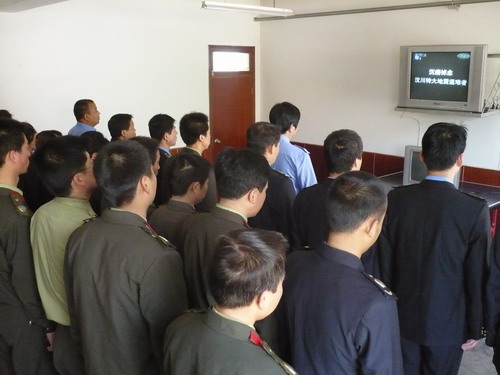 5月19日14:28分,草碧超限运输检测站职工纷纷自发来到站会议室,为在汶川地震中遇难的同胞默哀,表达人们心中的无限哀思。