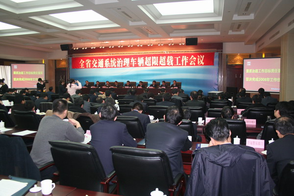 2月23日,全省交通系统治理车辆超限超载工作会议在西安召开。省交通厅厅长曹森出席会议并讲话,副厅长王明祥主持会议,厅总工程师冯明怀作全省治超工作报告,省公路局局长王平作干线和农村公路治超工作报告。会议回顾了2007年治超工作,明确提出了2008年治超工作目标。