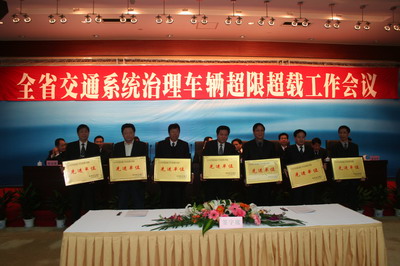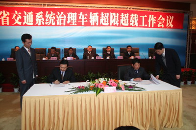 会议期间,与会代表围绕2008年治超工作进行了充分讨论。省交通厅对完成2007年度治超工作目标责任的优胜单位进行了表彰奖励,并与省公路局、省高速集团、省交通集团、厅运管局、各设区市交通局、杨凌示范区交通局签订了2008年度治超工作目标责任书。