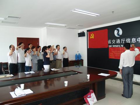 2011年7月1日,激昂的国歌在厅信息中心会议室奏响,信息中心全体党员面对党旗,庄严宣誓“我志愿加入中国共产党,拥护党的纲领……”。宣誓大会组织严密、庄严肃穆,严肃认真。使全体党员接受了一次生动的政治教育课,激发了党员干部自觉履行党员义务,努力发挥党员模范作用的责任意识。中心党支部书记廖军在会上讲话并向全体党员发出倡议。