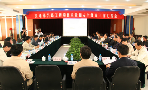 9月12日至17日,以交通部质监总站成平副站长为组长的交通部公路工程项目质量和安全督查组一行11人对我省公路工程项目质量和安全工作进行了督查,并于9月17日召开了督查工作通报会。交通部督查组分组通报了陕西检查情况,质监总站副站长成平就检查情况进行了总结,省交通厅厅长曹森,副厅长王明祥、魏培斌出席会议,省公路局、省高速集团、省交建集团、厅质监站、咸阳市交通局、省公路设计院、西安公路研究所、厅外资办等有关单位主要领导参加。