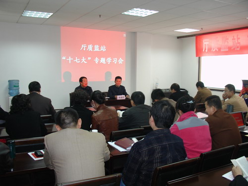 11月5日,厅质监站组织全体职工对党的十七大精神进行了专题学习,重点观看了10月29日省委书记赵乐际在省委党校举办学习党的十七大精神报告会上的宣讲报告。支部书记、站长薛生高同志传达了厅党组书记、厅长曹森同志在全省交通系统学习贯彻落实十七大精神动员报告会上的重要讲话,并就我站如何学习贯彻落实十七大精神进行安排部署。