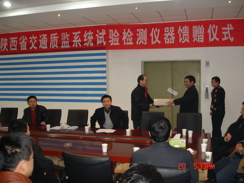 2月20日,厅质监站在西安举办了陕西交通质监系统试验检测仪器馈赠仪式,本次配备发放的试验仪器设备主要包括路面取芯机和数显回弹仪。厅质监站张毅副站长对各市站2008年农村公路质量监督工作思路、重点以及工程质量检测、鉴定等方面提出了新的要求,并督促市站进一步做好农村公路的日常监督工作。