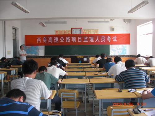 2009年8月28日,厅质监站联合西商第二通道高速公路管理处组织对西商第二通道高速公路1个总监办和9个驻地办共148名现场监理人员进行了业务知识考试。