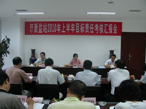 2010年7月9日上午,省交通运输厅考核组对厅质监站半年目标任务完成情况进行了考核。厅质监站站领导、各科室负责人和职工代表参加了考核汇报会议,省厅副总工程师、站长乔怀玉主持会议,副站长程道虎汇报了厅质监站半年目标任务完成情况。