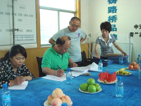 根据我站计划和统一部署,7月19日至23日,我站第二监督组随同从我省试验检测专家库随机抽选两位专家对青兰高速公路工地试验室进行了专项检查。检查认为,青兰高速公路工地试验室总体布局及仪器摆放较合理,人员设备基本满足要求,管理、质保体系运转正常,资质管理较规范,通过检查进一步加强了工地试验室管理,规范了施工现场试验检测工作。