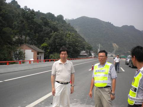 根据省交通运输厅7月29日专项会议纪要(二O一O年第十次)精神,8月12日,省交通厅副总工程师、厅质监站站长乔怀玉带队对遭受7.23洪灾侵袭严重受损的商漫、丹界高速公路水毁修复工作进行现场督查。