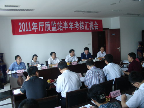 2011年6月27日上午,省交通运输厅副厅长李永民、工会主席陈武汉带领第二考核组对我站今年上半年目标任务完成情况进行了考核。站领导、各科室负责人和职工代表参加了考核汇报会议,省厅副总工程师、站长乔怀玉主持会议,副站长程道虎汇报了我站今年上半年目标任务完成情况。