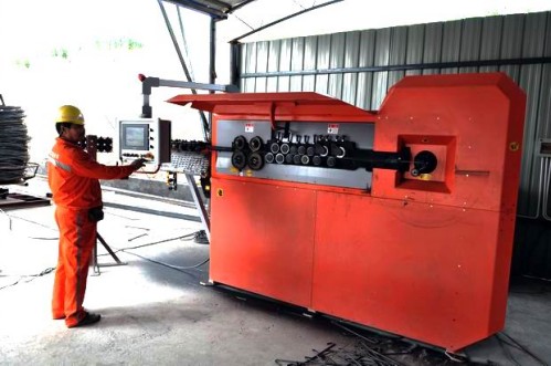 全自动数控钢筋弯曲中心和弯箍机通过编程式、智能化的控制技术,一改目前的人工操作方式,具有占地小、低成本,操作简便,控制器智能化等特点,生产程序可由工作人员根据实际需要自行调整,完成各种规格钢筋的成型,加工钢筋速度快,耗能低不损肋,是人工加工的5-10倍。铜黄高速公路推广钢筋数控加工设备,优化了传统钢筋加工工艺,降低了工人劳动强度,大幅提高了钢筋加工精度和生产效率,有效保证了工程质量。