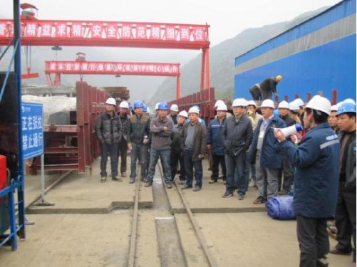 参会人员对梁场标准化建设、场区划分、标准化设备及标准施工工艺进行了观摩。PH-5合同段首先对钢筋加工区的钢筋数控弯曲中心机、钢筋弯箍机、全自动钢筋笼滚焊机的工作性能、功效做了讲解,对钢筋加工棚内的钢筋半成品堆放、部位标识及标准化钢筋大样图、操作规程等组织了学习;其次对箱梁的定位钢筋模架、整体式液压模板、箱梁预应力智能张拉机、智能大循环压浆工艺的施工过程的先进性、科技性及节能方面做了对比讲解;最后对箱梁养生采用彩钢板养护棚,使用全自动电热蒸汽发生机进行了性能介绍。最后在PH-5合同段会议室对预制箱梁标准化施工工艺技术进行了交流。
