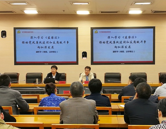 9月27日,厅质监站联合厅定额站、交通运行监测中心、宣传教育中心、职业能力建设中心、发展研究中心五家单位,共同举办《中华人民共和国监察法》专题讲座。此次讲座邀请了中共陕西省委党校法学教授,讲座题目为“深入学习《监察法》——推动党风廉政建设和反腐败斗争向纵深发展”,通过法律原文和案例分析,帮助党员干部了解《监察法》的立法脉络及立法特点、《监察法》赋予新时代党风廉政建设的新任务和新时代纪检监察工作的新要求;同时,结合《宪法》《中国共产党纪律处分条例》《公职人员政务处分暂行规定》,彰显了党纪国法“无缝衔接”,使党员干部对国家监察体系有了较为深入立体的把握。
