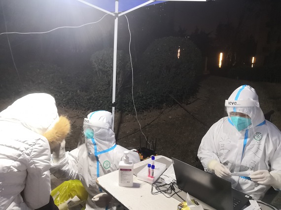 12月29日以来,第一批志愿者全部下沉社区,服从社区统一安排。白天,他们协助开展核酸检测,通知社区居民,维护队伍秩序;夜里,他们把爱心蔬菜挨家挨户送到住户手中,连轴转成为他们的工作常态,经常到下午了才吃上当天的第一口饭。由于新增2个临时核酸检测点,1月2日清晨5点,在漳浒寨街道办金辉悦府社区进行志愿服务的尚阳就开始了一天的工作,协助组织全小区人员进行核酸检测。为了让居民尽快吃上蔬菜,90后党员常仕东同志仅在元旦当天就完成了1579袋蔬菜的搬运及分发入户,随后又投入到核酸检测的工作队伍中去。截至1月2日晚,我站志愿者累计协助完成核酸检测25000余人次。文艺路街道办、曲江街道办居民中老年人较多,针对这一特殊情况,下沉干部乌磊同志、于伟同志发挥主观能动性,灵活开展工作,在核酸检测工作中为老年人指导智能手机操作,主动承担小区公共区域卫生打扫和消杀,为老年住户和有用药需要的住户购置天然气和药品,给社区居民带来方便,送去温暖。时值寒冬,防控工作条件艰苦,志愿者们从没有叫过苦说过累,时刻保持满满的正能量,在新华社区开展志愿服务的纪凯文同志反映,所在小区居民较少,主动要求前往任务更加繁重、更缺人手的社区服务。