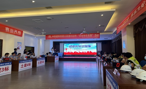 十时三十分,在室内分会场举办了安全生产知识竞赛,眉太项目各监理、施工单位和中心试验室共11个队伍参加了竞赛。通过竞赛筹备和现场角逐,充分调动了全线管理和技术人员学安全、管安全的积极性,引导从业人员进一步增强安全生产意识,为项目全面大干营造了良好的安全生产氛围。