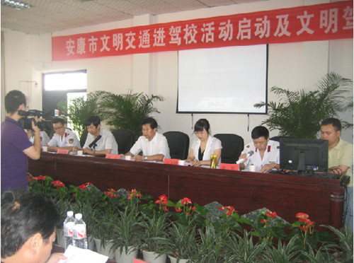 为深入开展文明交通推进行动,从源头上培养和树立机动车驾驶人“讲文明、讲礼貌、讲安全、讲秩序、讲礼让”的文明交通意识,自觉抵制各种不文明交通陋习和危险驾驶行为,倡导全社会文明交通风气,安康市运管处积极组织开展文明交通进驾校“五个一”活动(即:组织驾校开展好“一堂文明交通安全常识课、观看一次文明交通宣传片、参与一次交通安全劝导服务、参加一次文明驾驶宣誓仪式、签订一份文明驾驶承诺书”)。