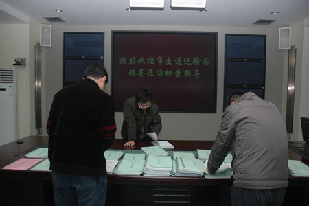 按照考核安排,考核组首先作了动员讲话,运管处马旭处长从场站建设、通村客运、安全生产、源头治超、信息化、交通战备、节能减排、服务世园等八个方面对2011年度业务工作完成进行了汇报,针对明年的工作目标,马旭处长提出要努力实现三个强化:即强化干部培训、强化市场监管、强化服务意识,以此作为明年工作突破点,全力做好全市道路运输管理工作。随后,考核组成员对处领导班子进行了民主测评,对照目标责任书内容认真查阅了相关基础资料,并到城南管理所进行了参观考查。