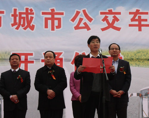 12月25日,汉中市城市公交车更新开通仪式在桥北广场隆重举行,中共汉中市委书记、市人大常委会主任张会民出席仪式并发布开通令。