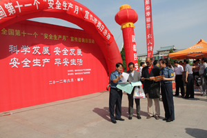 今年6月是全国第11个安全生产月,为全面宣传贯彻《安全生产法》,深入普及安全生产知识,6月1日,榆林市交通运输局组织榆林市公路局、市运管处、市城客办、市公交总公司参加了由榆林市安监局统一组织的2012年安全生产宣传咨询日活动,向社会公众提供与交通生产生活密切相关的安全咨询服务。