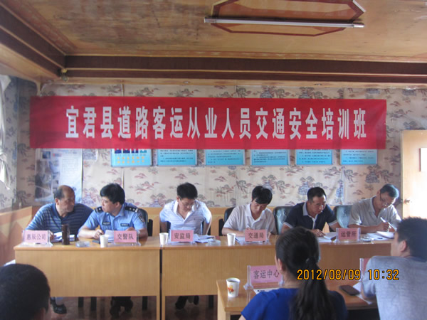 为贯彻落实“道路客运安全年”活动总体部署和要求,巩固和推进宜君县道路客运安全生产工作,近日,宜君县运管所举办全县道路客运从业人员交通安全培训班,宜君县交通运输局、安监局、交警大队的主要领导应邀出席,并就交通安全知识进行了讲解,各客运企业、汽车站场负责人及相关从业人员参加了此次培训。