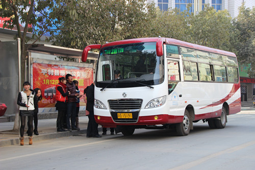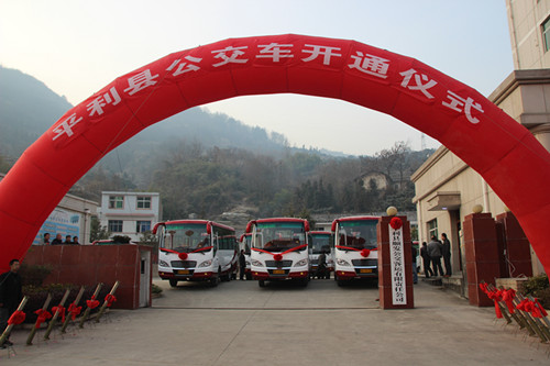 近日,平利县城公交车正式开通。此次开通的公交车运营时间为每天早6:30点至晚上7:30点,采取双向对开方式,发车间隔时间为10至20分钟。首批投入运营的公交车由16辆公交车组成,内设14个座椅,配置了2个爱心座椅。公交车为自动投币无人售票车,每人每次上车按2元计价收费。首先开通四条运营线路,全程共39公里,沿途设立停靠站点78个。