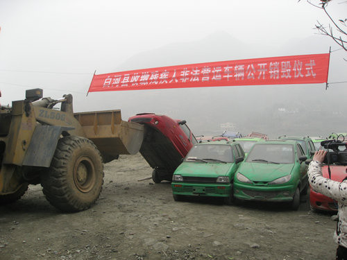 近日,白河县县委、县政府针对残疾人驾驶助残车从事非法营运现象,在全县范围内开展了为期半个月的依法取缔残疾人驾驶助残车从事非法营运专项整治活动,活动开展以来,收缴和销毁非法营运助残车27辆,有效规范了白河县客运市场经营秩序。