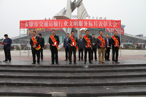 为表彰先进,弘扬正气,发挥榜样的示范引领作用,进一步激励全市交通运输行业广大从业人员提升服务水平,近日,安康市交通运输局、安康市文明办在安康市金州广场举行了全市交通运输行业“文明服务标兵”表彰大会活动。授予62名交通运输行业从业人员“文明服务标兵”等荣誉称号。