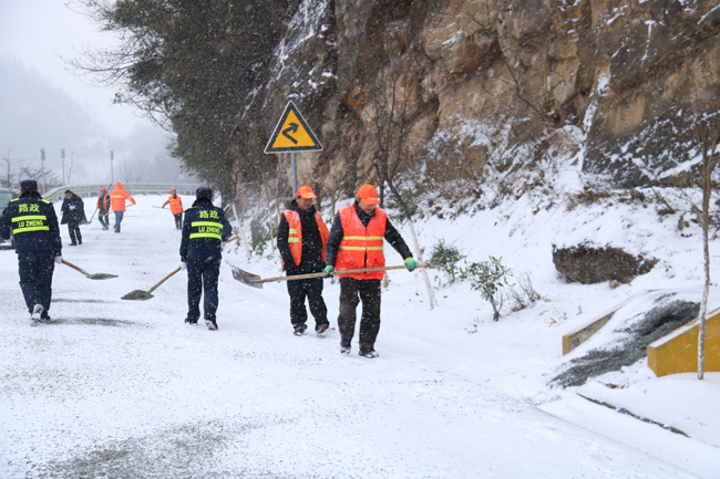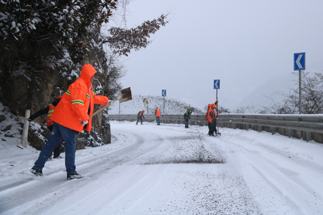 镇巴公路段及时行动除雪保畅