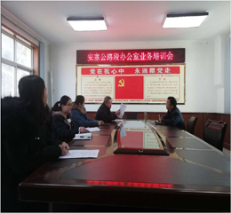 近期,安塞公路段办公室开展办公室业务培训会。培训会上该段办公室主任李伟元同志带领办公室人员认真学习《党政机关公文处理工作条例》,根据上级公文写作要求,系统全面的讲解在发文中应该注意的文体,字号,边距等细节问题,规范公文流程,进一步改进提升该段办公室系统文书工作水平,确保重大决策的部署和落实。并根据自己多年来的办公室工作经验,就当前的工作细节和公文起草要素进行一一讲解。