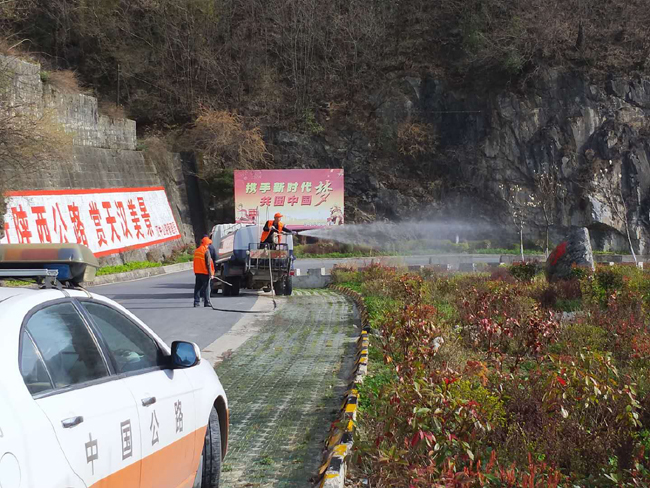为优化公路环境,彻底消除干线公路“脏、乱、差、”现象,确保空气质量优良,该段在加强宣传的同时按照路段分片划分责任区,明确责任人和环境整治标准,组织道班和养护工队集中人力对管养的路段路容路貌进行整治,对全线的绿化苗木进行修剪整形、浇水施肥,及时疏通水沟、桥涵泄水孔,清理路肩杂草杂物,加大路面清扫保洁力度,雇用洒水车对全线的标志标牌和公路防护设施进行清洗,重点对城区过境路段和部分易污染路段进行洒水除污降尘,确保降霾除尘取得良好效果。截至目前,整修路肩边坡3800平方米,清理函洞45道,疏通桥梁泄水孔147个,清理水沟45公里,清扫路面36公里;清理路面堆积物12处60立方米,拆除非公路标志标牌11块,修整绿化苗木27公里1450余株,浇灌绿化苗木670千平方米,清洗标志标牌182块;清洗波形安全防护栏2100米,路面洒水除尘67公里。降霾除尘工作取得阶段性胜利,工作效果得到当地政府的肯定和认可。
