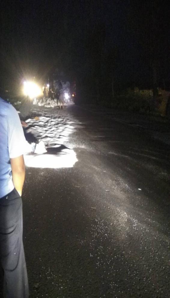 6月20日20时左右,307国道K1078+900(定边辖区蒋峁则)发生一起交通事故,导致该路段交通中断。定边路政大队得知消息后,于第一时间赶赴现场配合安边中队交警维护交通秩序。同时与蒙海则道班班道工迅速对肇事车辆抛撒在全幅路面的聚乙稀进行了清扫清理,防止次生交通事故的发生。此举既消除了道路安全隐患,又保障了公路行车的安全畅通。