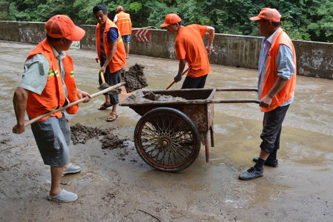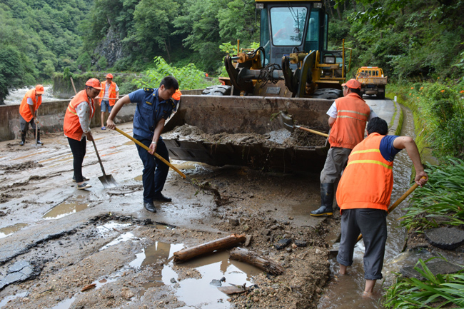 7月28日,佛坪境内突降特大暴雨,导致山洪暴发,河水猛涨,县城椒溪河水位一度逼近了警戒水位,大暴雨造成国道108发生塌方、泥石流40多处,塌方量8000余立方,其中k1510+500至1542县城至秦岭塌方泥石流最为严重,大量的泥石流裹挟着树根树枝冲上路面,使车辆行人严重受阻,灾情发生后,该段立即启动防汛抢险应急预案,迅速组织装载机2台,挖掘机1台,自卸车5辆,人员60余人,全面进行道路抢通工作,对涌上路面的塌方树枝泥浆,采取了大型机械设备前面开道,人工跟后全面清理的方式开展工作。并组织全段干部职工全员投入抢险救灾。经全体职工连续奋战,截止28日18时,国道108佛平境内大部分道路恢复通行,后续清理工作仍在进行。