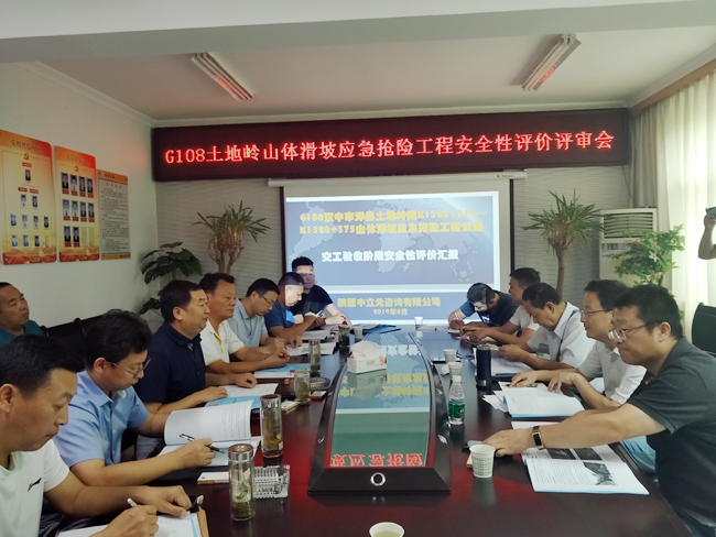 专家组一行对工程现场进行了认真考察,随后在佛坪公路段召开了安全性评价报告评审会,项目管理部、设计单位、监理单位、施工单位以及洋县公路段分别进行了汇报。专家组指出:公路路堑高边坡工程环境复杂,安全风险居高不下,一直以来就是行业安全监管的重点环节,在交工验收阶段进行安全风险评价,通过定性或定量的安全风险估测,能够增强安全风险意识,改进风险防范措施,规范预案预警预控管理,有效降低安全风险,严防重特大事故发生。结合现场调研,经认真讨论,专家组成员对安全性评价报告提出了修改意见,并最终形成了评审意见,专家组认为:评价报告编制内容较为全面,评估思路清晰,评估依据正确,确定的风险等级合理,可作为交工验收安全性的指导依据。G108洋县土地岭段K1520+219-K1520+375山体滑坡应急抢险工程治理效果良好,其安全性符合交工验收标准。