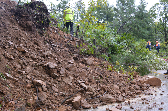 灾情就是命令,段领导当机立断,立即通知全段干部职工放弃中秋节休假,迅速赶回佛坪抢险排障保畅通。干部职工接到通知后,积极响应,13日上午,纷纷从汉中、南郑、城固、洋县等地赶回佛坪公路管理段。段长赵小军作简短动员后,兵分两路冒雨奔赴险情路段,开展清理塌方和交通疏导工作,同时对泄水空孔和涵洞进行清理疏通。截止9月15日16时,清理塌方6580立方米,清理倒在路面的巨石、树木、树枝等障碍物7处,清理疏通涵洞45道,佛坪境内国省道干线公路安全畅通,后续排险和清淤工作正有条不紊进行。